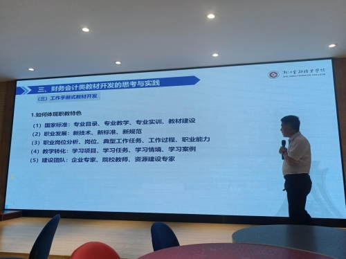 10月17日下午,工作室邀请到浙江金融职业技术学院金融学院的王忠孝教授做题为《中高职一体化课改背景下会计专业师资队伍建设》的专题讲座,王教授是浙江省会计与大数据专业中高职一体化课改的总设计师。他从浙江省会计专业中高职一体化课改的顶层设计出发,向各位学员讲述了中高职一体化课改的必要性和紧迫性,介绍了专业职业能力形成的路径,尤其是当今中职会计教师要深刻地认识到会计行业新变化呈现的新业态、新技术对专业教学的影响。当今中职会计专业教师要成为“金师”,必须要具备坚定的教育信念与意志;开阔的学科专业视野与结构;前瞻的课程意识与行为;持续的教学学术研究热情。这些素养也符合吴岩部长指出金师的要求:政治素质过硬;业务能力精湛;育人水平高超;技术方法娴熟等。