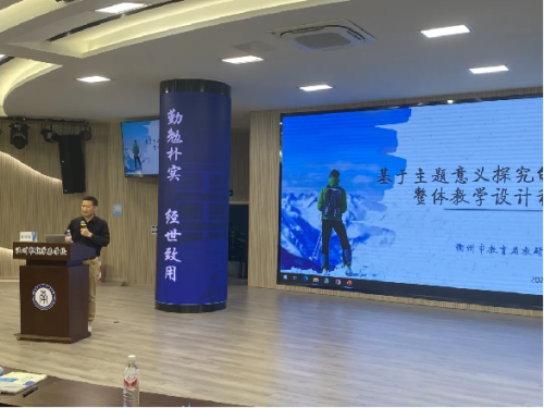 下午,衢州市教育局教研室黄雪祥老师作了《基于主题意义探究的单元整体教学设计和实施》讲座,对主题和主题意义进行解析,给出依托语境展开教学等的教学提示,并指出要加强单元教学的整体性。接下来,黄老师以八年级上册的Module9为例,进行了语篇和主题意义的研读和解析,整合内容,确定单元目标,并且根据学情划分具体学时,依托情境,设计学习活动,规划作业。对于单元整体教学,黄雪祥老师提出了三点建议:1.做好语篇解读;2.发展结构化思维;3.基于问题提升整体教学的有效性。