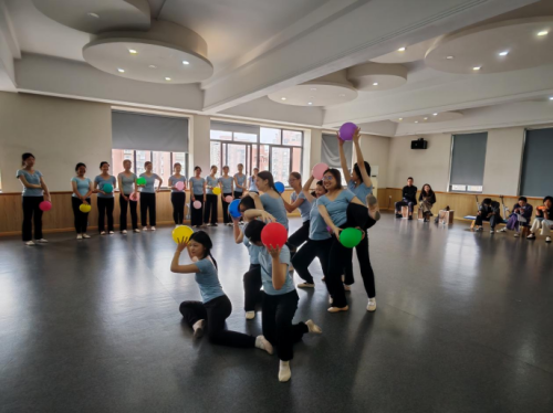 陈琼老师的舞蹈课《气球的节拍》更是将课堂变成了一场浪漫的舞会。陈老师巧妙利用气球作为道具,营造出一个梦幻的舞会现场。在巴赫的《小步舞曲》旋律中,同学们不仅学会了识别节奏节拍,还跟着音乐的节奏翩翩起舞。陈老师鼓励同学们利用身体的各个部位触碰气球,打破节拍的限制,创造出优美的动作。最后,通过提供动词银行,同学们分组展示,展现了他们在造型和队形上的奇思妙想,完美地将音乐节奏、道具与自身融为一体。