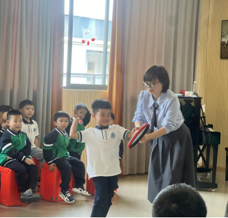 首先,是由王爱芬老师带来的展示课《两只小象》。《两只小象》是一首曲调活泼、欢快,歌词有趣且富有想象力的儿歌。王老师的课堂童趣十足,通过积极地师生互动和有趣的音乐活动为大家呈现了一场精彩的音乐课堂。这节音乐课张弛有度,充分运用听、动、唱、演等多种方式让全班学生参与到课堂当中,在生动有趣的游戏活动中引导学生理解本节课的重难点。并且利用多元的教学手法,营造和谐、互动、探究、创新的良好学习情境和氛围。