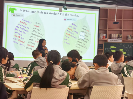 学生们继续阅读了两个关于茶故事的评论,从中获取了两位评论者(Feng Tao和Emma Jones)的基本信息。随后,他们根据评论内容预测了两位评论者接下来可能会谈论的话题,并阅读后续内容以验证预测。之后,学生们深入阅读了Feng Tao和Emma Jones的茶故事,并通过填空等多样化形式完成了故事的补充。这一环节让学生对茶故事的结构和要素有了更深入的认识。