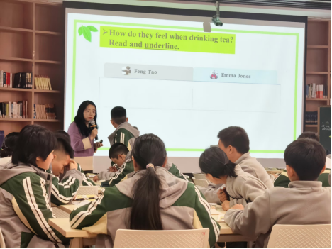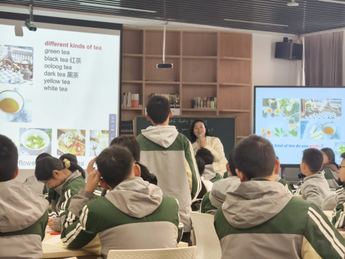 阙翔翔老师基于罗晓杰老师的读思写理论呈现了第一节读写课。课程伊始,学生们首先观看了一段关于不同种类茶叶的视频。随后,学生们将视频中的茶叶图片与对应的名称进行匹配,这一环节不仅考验了他们的观察力,也激发了他们对茶叶的兴趣。紧接着,学生们带着填写信息叶的任务阅读了一篇关于茶文化的博客文章,对茶的普遍性和重要性有了更深刻的认识。