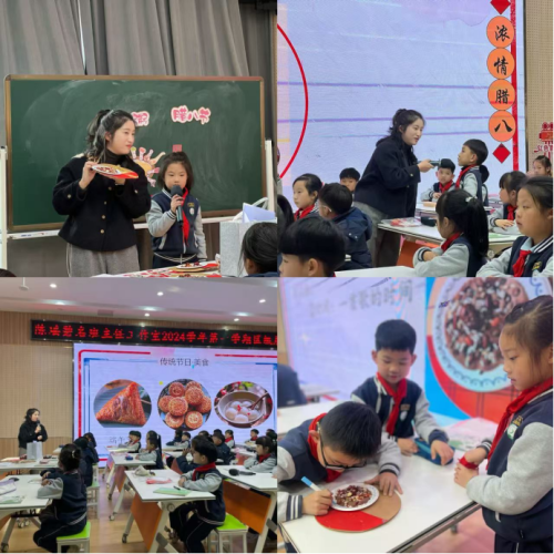 首先,由林晨玮老师带来二年级课例展示《美味腊八粥,浓情腊八节》。本堂课结构清晰,“腊八由来知多少”“腊八风俗来学习”“腊八滋味藏寓意”和“腊八情意我传递”四个环节层层递进,逐步深入,让学生全面了解腊八节的文化内涵。课堂中,林老师通过儿歌童谣、绘本故事、情境辨析、视频观看、课堂实践和分享等环节,让学生深刻体会到腊八节所蕴含的人情味和温暖情怀,培养了学生的社会责任感和爱心。