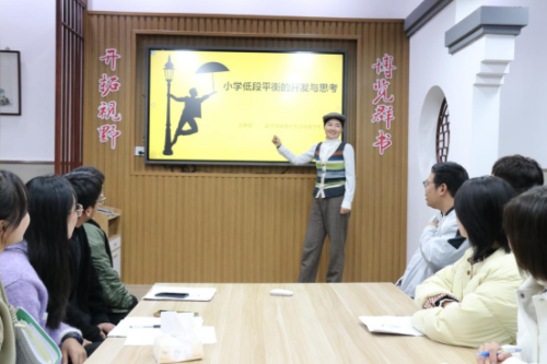 活动最后,刘老师对本学期的工作进行了期末总结,并布置了相关任务。随后,刘老师的讲座《一年级平衡类教学内容的思考》将活动推向另一个高潮,她指引大家如何制定单元计划,如何将各个课时衔接起来。她还以越野车、足球、砖块平衡等为例,抛出了问题,鼓励大家思考新的玩法和教学方法。刘老师强调,教育需要钝感力和敏感力相结合,既要对教学有钻研精神,深刻体会和反思教学中的得失;又要敏锐捕捉学生的心理动态,深入了解他们的喜好和需求,以任务驱动为手段,推动学生的不断进步。