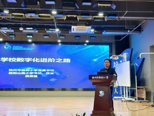 在活动的第二天,杭州市胜利小学党委书记、校长郭荣强分享了该校数字化进阶之路的宝贵经验。郭校长详细介绍了胜利钉、胜利魔方及教字教研室等创新举措,如何通过场景化思考、精准描述等原则,有效推进了学校数字化进程。他强调了第一把手亲自抓数字化推进的重要性,以及从易到难、逐步深入的推进策略。郭校长的分享为与会者提供了宝贵的借鉴和启示。