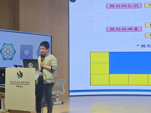 展示课结束后,由单显达老师带了专题讲座《积累活动经验 加强要素辨析》。单老师从“单元内容结构化分析”、“核心素养具体化表现”、“学习任务递进化设计”和“素养作业立体化设计”四个方面进行阐述。单老师基于学生实际学情,以目标导向和具体表现作为指引旨,采用递进式的学习路径设计,让创新意识和空间观念贯穿整个教学过程。本单元从立体图形中抽象平面图形中初步感知平面图形特征,在此基础上进行平面图形的拆分与组合、运用平面图形的特征解决实际问题等活动中,进一步感受平面图形特征及所学图形之间的关系,在观察、想象、操作中初步发展空间观念,在尝试、发现、调整中初步发展创新意识。