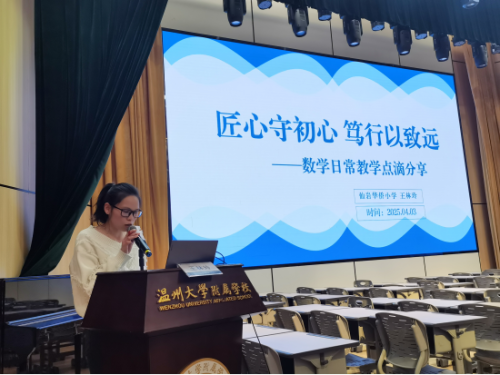 仙岩华侨小学王林玲老师在《匠心守初心,笃行以致远》分享中提到,接班时班级学情欠佳,但她却如智慧的舵手,带领学生穿越教学海洋。她先是钻研教材,精准锚定目标与活动设计,在活动巧设与优化中摸爬滚打,多实践、多讨论、多探索;还会及时复盘教学反思,精心优化作业,用思维导图、读题、操作等方式,为学生打造高效学习路径。在习惯培养上,她更是用心。像训练“听”功,追求耳到、眼到、口到、心到的境界;鼓励“说”,让人人登台讲题,锻炼表达;借助团队汇报搞“想”的合作学习;从规范作业环节入手抓“练”。她的特色做法也亮眼,坚持常态夯实基础,像个勤劳的园丁,时时抓计算,及时抓错题,用整册资料做检测,还不忘尊重差异,因材施教,努力让每个学生都能在知识花园茁壮成长。