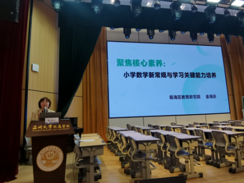 瓯海区教研院海跃主任在《聚焦核心素养:小学数学新常规与学习关键能力培养》讲座中,一方面强调通过学业品质数据分析来培养量感、推理与运用能力,尤其重视读题;另一方面探讨数学新常规的新内涵,涵盖评价规则、新备课方式以及以素养为导向的单元整体规划,旨在培养学生的数学学习关键能力。