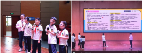 在与大模型的互动环节,祝教授以风趣的引导点燃全场热情,同学们纷纷向AI提出各种奇思妙想的问题。随后展开的AI对战环节精彩纷呈:双语诗词朗诵比拼、十字造句挑战、课本剧表演轮番上演。榉园学子们用声情并茂的双语朗诵和惟妙惟肖的情景剧表演,将现场气氛推向高潮,赢得了阵阵热烈的掌声。