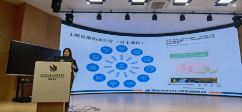 随后,郑伶俐副校长聚焦《小先生@潮爸妈》课程进行分享。她全方位、多角度阐述课程的开展进程与进阶情况,着重介绍通过搭建多平台开展活动,邀请家长走进校园,见证孩子成长的精彩瞬间,开启家校共育的全新篇章,为孩子的成长注入了双倍的力量。