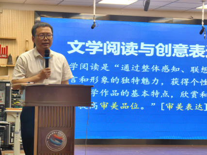 俞国平老师以《鉴赏性阅读:文学阅读与创意表达任务群教学的学科实践》为主题,立足新课标理念,从“阅读教学理论的建构:从分类到分层”与“文学阅读与创意表达”两个方面,展开深度剖析。他肯定了林老师“大活动设计”的理念,建议老师们关注学生习作中“光线变化”“环境烘托”等细节的处理,使情感表达更具层次感。围绕鉴赏性阅读教学,俞老师厘清“理解性阅读”与“鉴赏性阅读”的本质差异,构建三级阅读教学理论,让文学鉴赏真正滋养学生的言语生命。俞老师的讲座既聚焦课堂实践痛点,又贯通理论高度,为参训教师提供了“写作教学提质”与“文学阅读进阶”的双重行动指南,助力核心素养在语文课堂落地生根。
