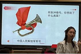 首先,第一节由刘老师执教。课程伊始,刘老师以一段激昂澎湃的红色革命故事视频拉开帷幕,将学生们迅速带入了那个波澜壮阔的革命年代。视频中,战士们英勇无畏的战斗场景、人民群众坚定不移的革命信念,深深震撼着每一位学生的心灵。