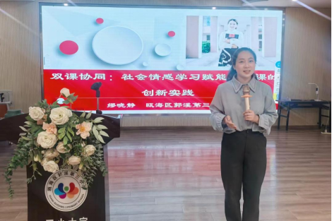 温州市教坛新秀缪晓静老师给大家带来专题讲座《《双课协同:社会情感学习赋能班会课的创新实践》,她创新探索“社会情感学习(SEL)与班会课双课协同”模式,将情绪管理、责任意识等核心素养融入班级活动,打造有温度的情感教育实践。她以“情境化+学科联动”重构班会课堂,如五年级《我的情绪小森林》主题课上,学生通过“情绪树”绘画、校园心理剧演绎,学习用“深呼吸法”“倾诉卡”调节情绪。课程设计贯穿SEL五大能力,比如用“班级情绪气象站”记录日常情绪波动,动态调整心理辅导策略。同时通过“家校情感日签”“劳动责任岗”等实践,将课堂延伸至家庭与社会。这一创新实践不仅让班会课从“说教场”变为“成长营”,也为落实“双减”政策下的德育创新提供了新路径。