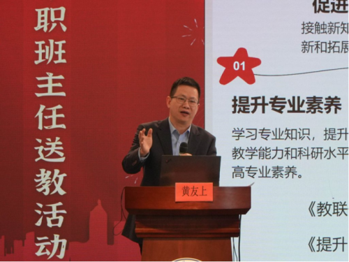 随后,瓯海区教师发展中心研训员黄友上老师围绕《同心共赢:我“带班育人”五个关键事件》展开分享。他通过自身发展的关键事件,启发班主任们专业成长的途径;用生动的案例和实用的技巧,为班主任们提供了心理健康教育和班级管理的有效方法,帮助大家更好地应对工作中的实际问题。