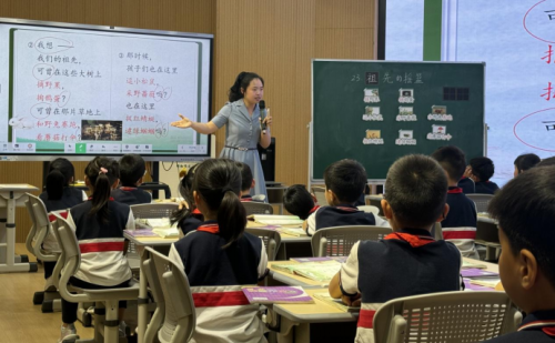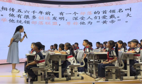 下午,工作室成员陈奕可老师和绿轴小学二(2)班学生共同演绎二年级下册《黄帝的传说》一课。课堂中,陈老师采用板块式教学设计,以层层递进的教学环节,带领学生探寻中华文明源头,领略神话故事的独特魅力。教学紧扣黄帝传说核心内容,以“看到什么—想到什么—怎样行动—产生何种结果”为主线,帮助学生梳理故事脉络,构建清晰的叙事逻辑。同时,巧妙运用“故事翻翻卡”作为思维支架,激活学生想象力,激发表达热情。学生在文本细读与语言实践中,逐步感知黄帝的人物形象,实现语言能力与文化认知的协同发展。