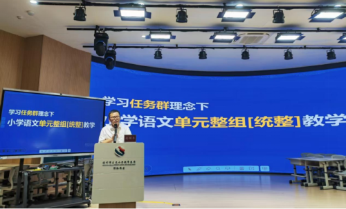 俞国平老师以《学习任务群理念下 小学语文单元整组教学》为主题,紧扣新课标理念,从“学习任务群”“单元整组教学”“阅读与表达并重”三大维度,深入阐释单元整组教学的理念。他结合日常教学中的典型现象,清晰界定了教材单元与学习单元的内在联系。