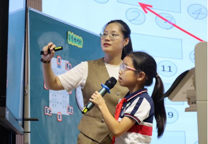 在“寻找宝藏”主题环节,温州市未来小学教育集团何蓓蕾老师执教《寻宝大作战》一课。她巧妙融合AI助手“豆包”,引导学生在真实情境中掌握“几点钟方向”定位方法。课堂上,学生通过分组协作,在解读线索、逐步缩小范围并定位重合区域的过程中成功完成“寻宝”任务,有效提升了空间方位表达能力,激发了持续的数学探究兴趣。随后,集团单显达老师作《AI赋能下小学数学综合与实践的实践初探》专题报告。他系统梳理了该领域的发展脉络,并针对学生平面与现实空间转换能力薄弱的问题,提出借助AI工具重构学习场景,构建“识图—制图—用图—讲图”的一体化教学路径,为推动学科融合与核心素养的落地提供了可行方案。