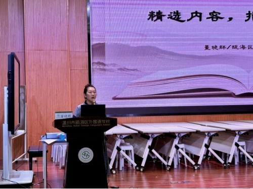 省特级教师、正高级教师董晓群老师作了《精选内容 指导充分学习》的专题讲座。董老师就如何用好教材、落实新常规提出了具体建议,并以默读为例,详细指导教师如何细化学习指导,提升学生学习品质。最后,董老师结合当天四节课例,为全区小学语文教师示范了如何设计一堂“瓯海好课”,并结合调研中各校教学新常规的落实情况进行反馈,并为下一步新常规落地提出了具体要求。