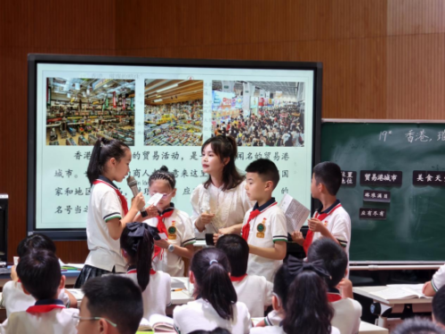 温州市未来小学教育集团黄美丽老师执教三年级上册新增课文《香港,璀璨的明珠》。黄老师引导学生默读找关键语句梳理课文,在朗读中充分感受香港“璀璨明珠”的魅力,体现了默读和朗读的有机结合。课后,黄老师围绕备课常规中“如何设计关键问题和学习任务,支持学生自主发现和探究”这个要点进行了说课分享。