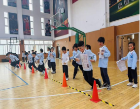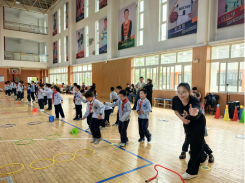 梧田片区选派的青年教师王梦诗,以一节《各种形式的跳跃》展示课惊艳全场,充分彰显片区“四化课堂”实践成果。她以“创意跳跃王国”为主线,精心设计“探险过河”“创意设计大赛”等情境游戏,将跳跃技能自然融入趣味活动,瞬间点燃学生参与热情。