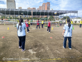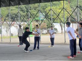 第二节课,温州育英实验中学的赵晶晶老师在八(5)班执教排球《发垫的综合运用方法2》。她巧妙地将技术练习融入“简易规则下的3v3比赛”中,让学生在真实的对抗中体会战术配合,课堂气氛活跃,团队精神得到充分培养。