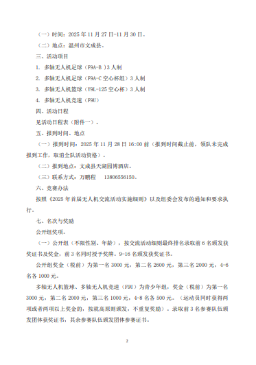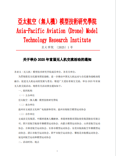 2025 年首届亚太地区无人机联赛即将在浙江省温州市举行,各学校可组队参赛。详细见比赛文件:
