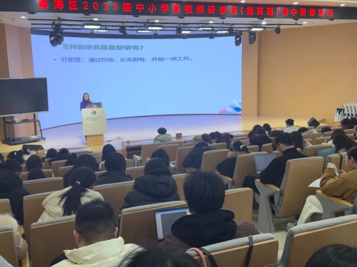2026年1月8日下午,瓯海区2023级中小学新教师研修班(提高期)集中研修活动于绿轴小学报告厅举行。本次研修班的主题为“研究素养和情感素养”,针对新教师在德育带班与课题研究方面普遍较为薄弱的情况,特邀请南浦实验中学德育名师张艳老师与瓯海区教育研究院教育科学研究室主任韩紫薇老师,为新教师们带来两场精彩讲座。