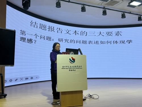 活动后半段,韩紫薇老师为新教师带来《开展课题研究丰盈专业生活》讲座。韩老师语言幽默且精准,使新教师对“课题”这一看似复杂的研究模式有了更清晰的认识。韩老师从评比系统到具体环节步骤,详尽地为新教师解答了“课题”的运行模式、作用、撰写模板及相关建议。