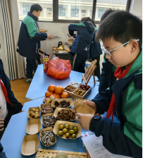 来自瓯海区潘桥第一小学的李逸老师执教《围炉煮茶》。课堂伊始,李老师以传统文化中的“围炉”意象为切入点,通过引导学生认识煮茶工具、了解罐罐烤奶起源,快速构建沉浸式学习情境。教学中,李老师摒弃“教师示范+学生模仿”的传统模式,聚焦具身实践理念,让学生全程参与场地布置、食材处理、火候调控、烤奶制作、成果分享等完整流程。学生分组协作,有的负责挑选桂圆、桂花等食材并清洗切配,有的专注调控烤炉温度、观察茶汤色泽,有的精心布置围炉场景,在动手操作、多感官体验中掌握劳动技能,体悟传统民俗文化的独特魅力。李老师则以观察者、引导者的身份,针对学生操作中的问题及时点拨,让课堂既充满劳动乐趣,又蕴含思维深度。