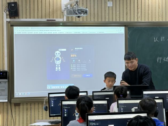 首先,由瓯海区梧田南堡实验小学的倪侣凯老师执教《认识人工智能机器人》。倪老师利用精心设计的交互式网页“智能机器人实验室”,通过直观的互动操作,让学生揭开了人工智能的神秘面纱。课堂上,学生在沉浸式的体验中,对人工智能机器人的定义、分类及核心原理有了清晰且准确的认知。