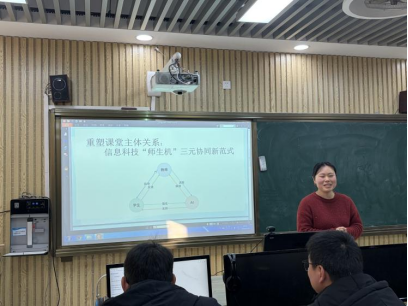 研讨过程中,工作室成员们围绕“师生机三元共同体”这一核心概念展开了热烈讨论。大家一致认为,在AI拓展课程中,人工智能不仅是教学工具,更是教师的“协作者”。它能通过可视化手段照亮学生的思维盲区,并实现精准的学情分析与即时评价。吴程程老师强调,教师应关注如何通过人机协同解放创造力,设计出更具探索欲的课堂环节。