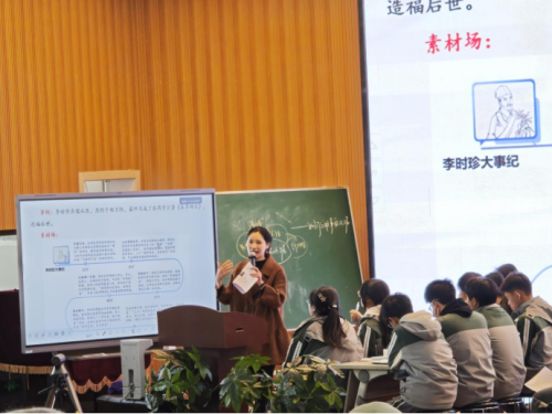 第二节课,郭溪中学的廖苏苏老师带领同学们一起学习《如何运用事实论据》。再次梳理课文内容,同学们发现了事实论据的特点,并总结事实论据的选取与论点之间呈现怎样的关系。紧接着,廖老师别出心裁,运用AI,生成了记叙文片段与议论文片段,将两者进行分析比较,引导学生感受同一事例在不同文体中语言表述的不同。在实践环节,同学们以李时珍的人生经历作为事实论据,完成分论点的写作,最后,廖老师回应第一节课,指导学生针对自己的中心论点完成个性化的写作提纲。