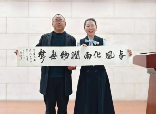 龙湾区小学语文教研员曹俊老师也为活动送上祝福。他不仅分享了对语文教学的独到见解,还赠予董晓群老师书法作品“春风化雨,润物无声”,以此传递对小学语文教育同仁的深切期许。