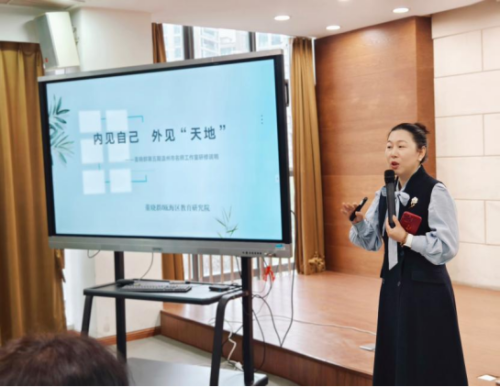 董晓群老师以《内见自己,外见“天地” 》为主题分享寄语,她结合自身教育经验,叮嘱学员们要沉心静气,看清教育本质,勇于突破自我。她的话语如明灯,为学员们的专业成长指明方向;她的教育热忱,更深深感染了在场每一位教师。