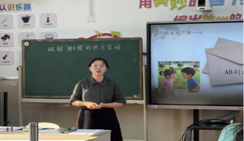 活动伊始,两场精心设计的主题班会依次精彩呈现。首先,陈俐如老师带来班会课《破解 “朋友圈” 快乐密码》。课堂上,陈老师紧扣当下学生的社交生活实际,通过情景模拟、小组讨论、案例分析等丰富形式,引导学生正确认识 “朋友圈” 的价值与边界,学习辨别网络信息、理性表达自我、维护健康社交关系的方法。整堂课贴近学生成长需求,互动氛围热烈,有效帮助学生树立了积极向上的社交观念,为家校协同引导学生健康使用网络提供了实用的课堂范例。