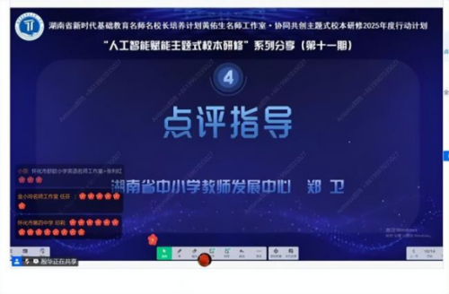 1月22日,陈哲名校长工作室全体成员齐聚线上,共同参与了主题为“人工智能赋能校本研修”的专题分享会。本次分享会是湖南省新时代基础教育名师名校长培养计划黄佑生名师工作室协同共创系列活动之一,聚焦AI技术与校本研修的深度融合,为教师们带来了一场内容丰富、干货满满、启迪思维的思想盛宴。