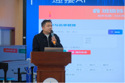 瓯海区学生实践学校翁万林老师压轴出场,主讲《人机协同新范式:AI平台教学案例深度解析与创新设计》。他现场演示了利用“扣子”“灵光”等平台快速生成“智慧露营”智能体、数学错题讲解工具以及“人民币找零”“追及问题”等互动式课件,让抽象技术化为可感可用的课堂利器。