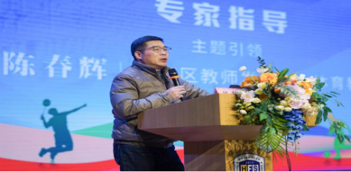 活动尾声,瓯海区体育教研员陈春辉老师进行总结引领。他首先澄清了一线教师对课标中 “运动能力” 的常见误解,强调运动能力是学生在情境中解决问题的综合能力,而非单纯的动作技能;随后深度解读 “大单元教学” 内涵,指出其核心是围绕核心素养的结构化课程设计,而非课时的简单叠加;最后结合省版 4.0 教案,从目标设定、环节设计到评价方式,为教师提供了清晰的实践路径。陈老师鼓励全体参与教师深耕课堂、勇于创新,切实推动 “三有四化” 理念落地,提升区域体育教学质量与实效。