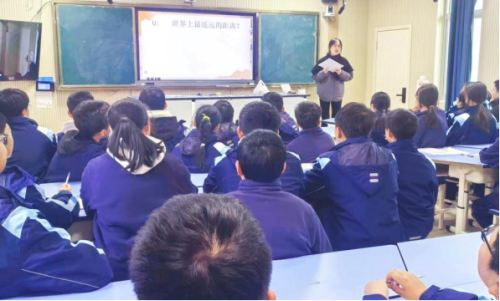 随后,温州中学附属初中梅丛老师,为七年级带来《闪北斗星光,响强国心跳》,借北斗导航争议串联典型案例,以互动辩论点点燃思考之花,结合科研故事诠释北斗精神。课堂尾声,学生设计北斗应用方案并书写成长目标,让爱国情怀落地生根。