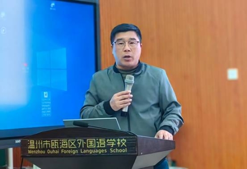 会议伊始,瓯海外国语教育集团的副校长陈展华老师带来《五维驱动 —— 瓯外小学体育课程设计与实施的实践》专题讲座,结合一线实践案例,分享体育课程建设创新成果。围绕国家 “每天一节体育课”“校内两小时综合活动” 政策要求,从固本强基、志趣飞扬、日常浸润、以赛促练、无界延伸五个维度,详解系统化体育课程体系构建思路,为全区各校体育课程建设提供可借鉴、可落地的实践范本。