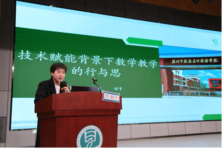 瓯海区外国语学校胡亨老师分享了《技术赋能背景下数学教学的行与思》。他结合一线教学痛点,从政策背景、实践路径、育人导向三个维度,展示了人工智能、大数据等新技术在精准诊断学情、优化教学设计及实现个性化辅导中的创新应用,引发了与会教师对“智慧教育”落地实践的深层思考。