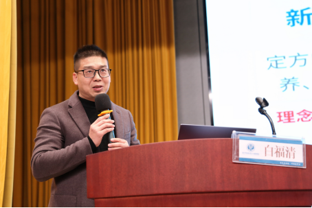 最后,瓯海区教育研究院白福清老师作《“四新”背景下的教学思考与建议》报告,全面部署新学期研训工作。他首先以一次函数单元为例,讲解大概念引领的单元整体设计思路,立足实际情境落实数学核心素养。针对中考一轮备考,明确课堂为核心、教辅作参考的原则,优化复习课流程,分层设定教学目标与作业,引导学生掌握解题分析方法。同时对课例《圆基本性质复习》作出点评,提出关注知识的结构形成,以及例题分析的有效性,对学生的解答进行引导性提问,让