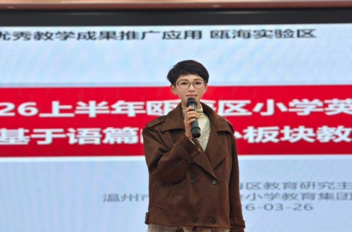 工作室主持人丁邱邱老师进行了活动综述。她对本次研训活动的圆满举办表示祝贺,对郑文老师的专业指导、全体执教教师的精心备课以及工作人员的辛勤付出表示衷心感谢。丁老师指出,本次活动以新课标为引领,以新教材为载体,以语篇教学为核心,通过课例展示、教学反思、专家点评、卷入式研讨、专题讲座等多种形式,让全体参会教师在学习与交流中更新教学理念、提升教学能力。她希望全体教师能将本次研训所学运用到教学实践中,深耕语篇教学,聚焦学生核心素养培养,不断探索新课标与新教材融合的有效路径,推动瓯海小学英语教学质量再上新台阶。