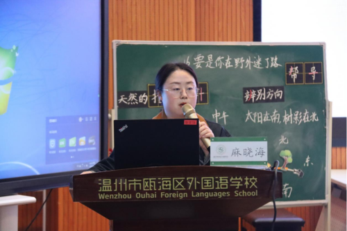 课例展示后,瓯海区外国语学校麻晓海老师作《二年级下册第六单元教材设计建议》观点分享。麻老师提出“联结、联合、联评”的单元整体教学策略。通过多向联结,明确“学什么”,整合自然主题文本,提升信息提取能力;多元联合,设计“怎么学”,以任务情境驱动语言运用;多维联评,保障“学得好”,借助跨学科作业与过程评价,推动学生素养与兴趣进阶,让语文味与科学探索同行。