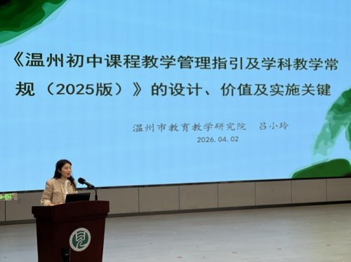 活动伊始,温州市教育教学研究院吕小玲老师带来《温州初中课程教学管理指引及学科教学常规(2025版)》专题讲座。讲座围绕“为何出台新常规”、“如何用好新常规”、“以小切口撬动课堂变革”三大核心展开,吕老师指出,新常规是回应时代、系统与管理之变的专业操作手册,旨在构建“管理-教学-学习-教研”四位一体框架,推动课堂从“教知识”向“育素养”转变、管理从“约束”向“指导”升级。同时,她提出以“小切口”项目为抓手,通过聚焦切口、深耕过程、提炼成果推动课堂变革,并明确视导核查重点,为学校规范教学管理、落地新常规提供清晰指引。