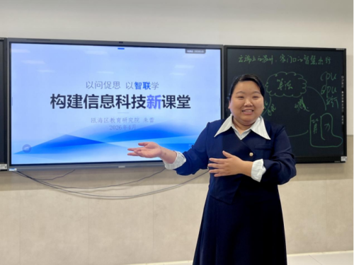随后,瓯海区第二外国语学校张如老师展示《云端上的温州:家门口的智慧出行》信息科技公开课,生动践行学校“卡单智联”校本教学模式。课堂以大罗山亲子爬山的生活化情境为切入点,以问题卡引导学生主动思考,以任务单搭建阶梯式学习支架,设计三大实操体验环节,让学生在动手操作AI工具、规划导航路线、比拼信息检索的过程中,自主解锁AI“数据、算法、算力”三大核心密码,理解其内在逻辑。学生以小组为单位合作探究、互动研讨,不仅掌握了AI工具的规范使用方法,树立了正确的AI伦理观,更让信息科技核心素养培育在课堂中落地见效。