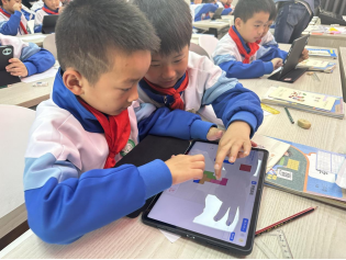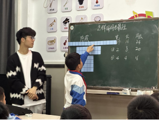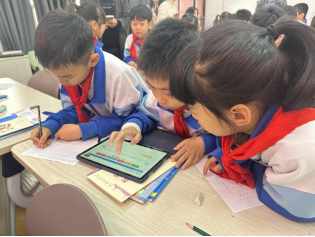 上午第一节,鲍成睿老师引领三(2)班的孩子们探索“怎么拼周长最短?”这一趣味问题。鲍老师以“独学、共学”的教学模式,引导学生深入探究用16个正方形拼摆长方形或正方形时周长的变化规律。课堂上,学生通过动手拼摆实物与平板操作模拟相结合的方式,直观感知图形边长的动态变化,逐步发现“图形越趋近正方形,其周长越短”的数学规律。鲍老师巧妙融合具象操作与抽象思维,让学生在自主尝试与协作反思中突破认知局限,最终在试错与优化的过程中寻得拼图的最优解,实现了数学逻辑与空间思维的深度发展。