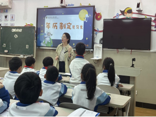 下午第一节课,余如如老师和三(2)班孩子们一起成为年历制定见习生探索《制定年历》。余老师打破传统教学中死记硬背的模式,从地球、月球、太阳的运动关系切入,带领学生“穿越”回古罗马,探寻历法制定的背后故事。学生化身“时间管理者”,通过计算地球公转周期与月相变化,亲手制定了属于自己的日历。这堂课不仅让学生理解了年月日的由来,更深刻体会到了数学与天文学、历史学的紧密联系。