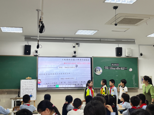 活动第一环节,梅勤余老师带来课例展示《地球的卫星》。课堂中,梅老师以新课标为指引,结合多样态学习理念,巧妙融入AI工具辅助教学,通过多模态学习资源,引导学生从视觉、听觉等多维度感知月球特征,激发学生的探究兴趣。课堂上,学生们在梅老师的引导下,围绕月球的运动、月相变化等核心问题展开探究,借助AI生成的动态演示资源,直观理解抽象的天文知识,在自主探究与合作交流中深化对“地球的卫星——月球”的认知,充分展现了AI背景下科学课堂的多样态魅力。