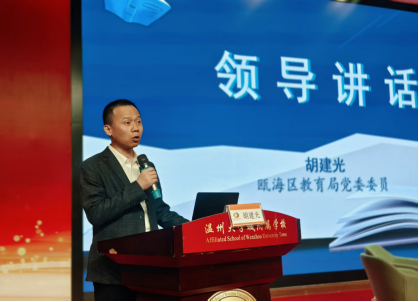 瓯海区教育局党委委员胡建光作总结讲话,他高度肯定本次论坛内容扎实、成果丰硕,充分认可瓯海区“爱阅读”工作成效,并对后续阅读活动作出部署,鼓励全区持续深化课堂实践、丰富阅读形式,让“爱阅读”扎根校园、融入日常。